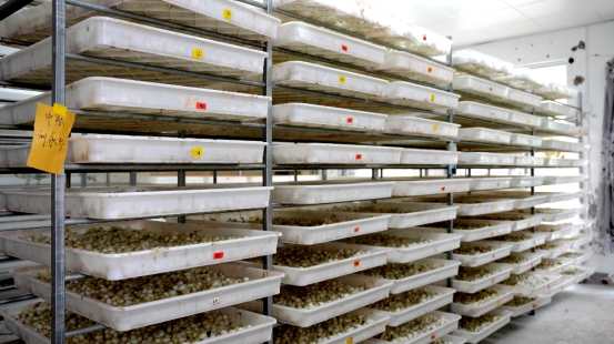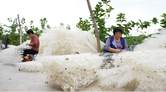 走进蚕室,一片白花花的蚕茧映入眼帘,个个饱满厚实,密密匝匝地结满了蚕蔟。十多名工人正有条不紊地将成熟的蚕茧轻轻摘下,并剔除次品与坏茧。蚕桑产业的发展,不仅盘活了土地资源,也为社区和周边群众提供了在家门口就业的机会,实现“顾家、增收两不误”。