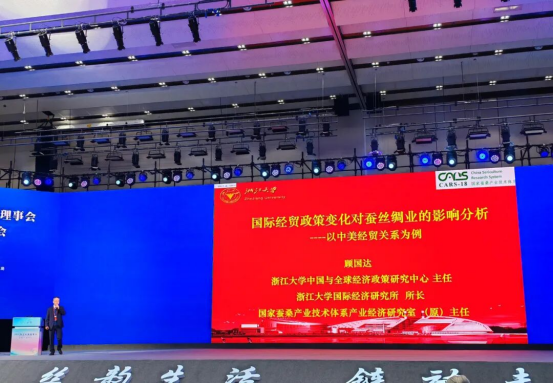 浙江大学中国与全球经济政策研究中心主任顾国达作《国际经贸政策变化对蚕丝绸业的影响分析》