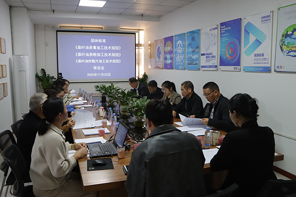 11月23日、25日,广西标准化协会组织有关专家在南宁召开会议,对由广西壮族自治区蚕业技术推广站提出,广西壮族自治区蚕业技术推广站、广西壮族自治区茶叶科学研究所、广西绿异茶树良种研究院、广西职业技术学院共同起草的《桑叶绿茶感官审评方法》,广西壮族自治区蚕业技术推广站、桂林恭城奕丰园茶业有限公司、恭城瑶族自治县平安镇大江村黄泥界茶叶种植专业合作社共同起草的《桑叶油茶粉加工技术规程》《桑叶油茶膏加工技术规程》,广西壮族自治区蚕业技术推广站、广西标准化协会、广西平果惠民蚕业科技有限公司、隆安县桑海田园果蔬种植家庭农场共同起草的《桑叶油炸脆片加工技术规程》共4项团体标准进行审定。审定会由广西标准化协会副秘书长刘祁云主持,广西标准化协会有关负责人、专家组成员,以及起草单位项目组成员共同参加。