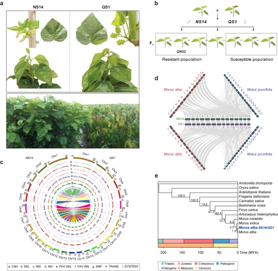 图1 ‘农桑14号’和‘强桑1号’的基因组及系统进化信息