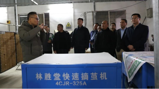 12月5日中午,为提升乡镇党政正职推动产业高质量发展的实践能力,中共河池市委组织部举办的全市乡镇党政正职推动支柱产业高质量发展能力提升专题培训班全体学员,莅临我公司——广西河池市林胜堂蚕具有限公司进行现场观摩学习。我公司黄总经理对他们的到来表示热烈欢迎,并为此次活动进行讲解。