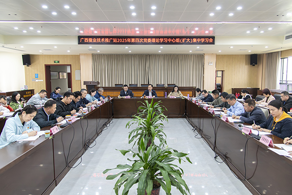 12月17日下午,广西蚕业技术推广站召开2025年第四次党委理论学习中心组(扩大)集中学习会。站党委书记卿军主持会议并讲话,全站副科级以上干部参会。