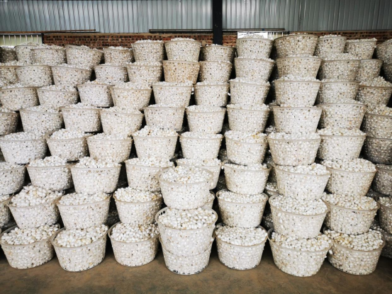 推广“良种+良法”模式,引进抗病性强、产叶量高的“农桑8号”“强桑1号”品种,实行水肥一体化管理,桑叶产量提升30%以上。推广小蚕共育技术,共育中心引入智慧温湿度控制设备和自动消毒技术,为小蚕生长提供更优良的环境。推行大棚省力化养殖技术,通过实施自动温控、水肥一体化、消毒防病等标准化流程,单产水平显著提升,蚕茧单产从每张40公斤提高至每张43公斤,优质茧比例超95%。