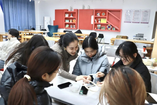 “蚕桑文化不仅是老祖宗留下的传统民俗,更是能融入现代生活的鲜活元素。”课堂上,周利萍围绕非遗溯源、匠心自述、活态新生、总结展望四个板块展开分享。她系统梳理了天福蚕桑生产习俗从古传承至今的历史脉络,结合自身多年的传承经历,讲述了在坚守传统与创新发展过程中的点滴感悟。同时,聚焦非遗文创的年轻化表达和在现代生活场景中的应用,通过具体案例讲解与互动交流,加深了青年学生对传统非遗的认识和了解,更在设计创新能力提升和传统文化元素运用上给予了他们专业的启发,激发他们对传统文化的浓厚兴趣。