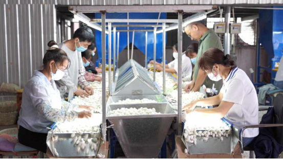 产业高质量发展,离不开硬核的科技支撑。在维的乡查苴二组,小蚕共育户毛向明去年凭借成熟的共育技术,培育5批小蚕,养蚕年收入实现20多万元。通过精准控温控湿的智能化温湿调控系统、严格的桑叶筛选与消毒流程,他培育的小蚕成活率持续保持在98%以上。“小蚕养得好,大蚕没烦恼。标准化、精细化是关键。”这位有二十多年经验的“土专家”深有体会。蚕桑养殖是门技术活,永仁县通过组建专业技术服务队伍,大力推广优良桑蚕品种、省力化养殖、绿色防控等关键技术,并以“企业+基地+农户”模式推行统一标准,使全县蚕茧优质茧率稳定在85%以上,为生产高品位生丝打下坚实基础。