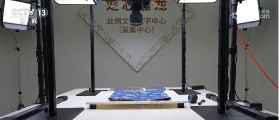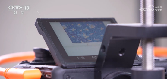 总台央视记者 任梅梅:现在我们看到的就是一台用于丝绸纹样采集的数字化设备,搭载了我国自主研发的高光谱感光的智能芯片,这款应用于遥感卫星上的智能芯片,如今也正在丝绸纹样以及色彩等数据的提取工作中发挥着关键作用。