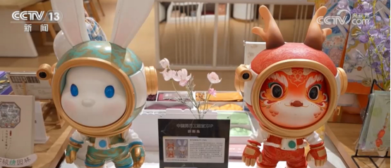 苏州丝绸博物馆馆长 钱兆悦:像这一款丝巾的纹样都来自于数据库里的那件朱红色传统的女服上的这些纹样。这个是中国探月工程的官方IP兔星星,外面身穿的宇航服上面,就是来自于我们馆藏明代的四合如意云纹,云纹和航天、太空有着很密切的关系,也象征着我们中国文化和中国科技的两种力量融合。