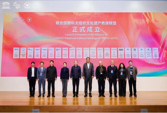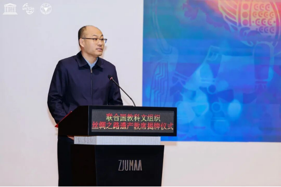 活动现场,Journal of Silk Road Heritage(JSRH)英文学术刊物发布仪式及“联合国教科文组织文化遗产教席联盟”成立仪式同步举行。