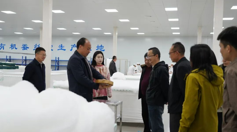 考察组一行先后深入宁南县五星级蚕桑现代农业园区、桑枝食用菌基地、优质蚕种繁育中心、鲜茧智能收烘仓储中心、丝素活性肽提取生产线基地、优质茧丝生产基地及蚕桑副产物开发基地,通过实地查看、现场交流、听取介绍等形式,系统了解宁南县在蚕桑产业发展中的先进做法和显著成效。