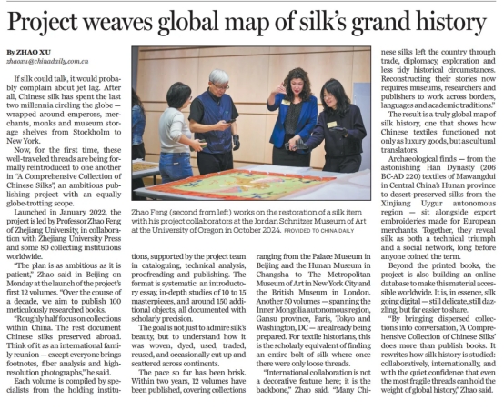 2025年12月25日,《中国日报》头版刊登 Project weaves global map of silk's grand history,《“中国丝绸艺术大系”项目编织丝绸宏大历史的全球地图》报道;