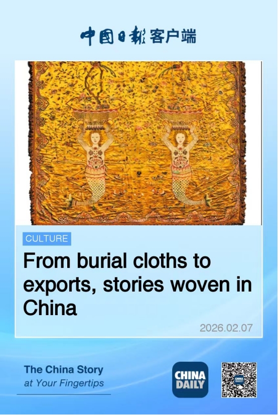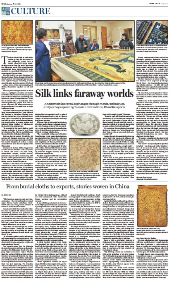 2026年2月7日,《中国日报》第十版刊登 Silk links faraway worlds,《丝绸链接起遥远的世界》以及 From burial cloths to exports,stories woven in China《从随葬品到外销绸:丝绸编织中国故事》两篇专文报道。