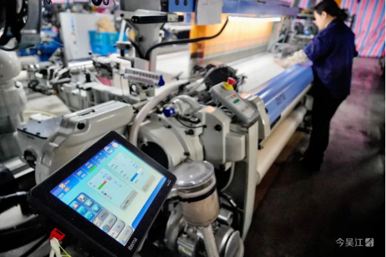 “数字化管理是织造业发展的必然趋势,传统产业不跟上时代步伐,就容易被市场淘汰。”吴建华表示,企业已整合原有生产资源,将产能集中至新智能车间。新车间共配备150台数码剑杆机,满负荷运转状态下,年产能预计可达150至200万米,企业产值将实现显著提升。“数字化管理全面落地后,我预计生产效率有望提升20%至30%。”吴建华坦言,未来,企业将逐步推广人工智能管理模式,实现各生产工序的数字化联动,通过智能系统自动统计员工产值、核算工资,倒逼生产效率和产品质量实现双重提升,还可以为客户提供在线下单、订单进度查询等便捷服务。“我们会不断给AI系统‘喂料’,培育更强大的智能管理大脑。”吴建华满怀信心地说道。