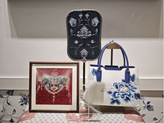 在工艺创新上,刺绣的应用场景在不断拓展。比如在真丝绡(也称生丝绢)上刺绣,因其材质通透,可用于制作团扇、空间屏风等软装;在羊毛类产品上刺绣,因为克服羊毛柔软与弹性带来的皱褶问题而获得独特青睐。