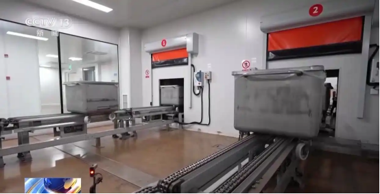 总台央视记者 唐蕾:每个饲料桶上都有不同颜色的标识,分别代表着不同年龄阶段蚕所吃的饲料,通过自动化的输送线可以实现“送餐上门”,让蚕宝宝第一时间吃到新鲜的“营养餐”。