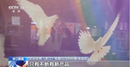 达利丝绸(浙江)有限公司总经理 张金珍:未来我们不仅仅是把这些面料应用到服装、服饰、家纺产品上,也把它做成墙布、装饰品,只有不断有新产品,技术不断地去创新,才能够引领市场。