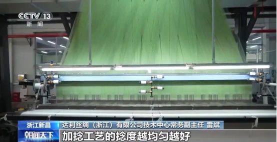 达利丝绸(浙江)有限公司技术中心常务副主任 雷斌:最关键的一道工艺是加捻工序,加捻工艺的捻度越均匀越好,相当于回弹效果越好。