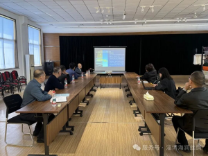 实地考察结束后,专家组一行来到山东轻工职业学院,与学校及海润企业代表举行座谈交流。会上,高庆刚董事长向专家组作专题汇报,介绍了企业近年来的发展概况、核心优势、创新成果及未来规划。企业坚持“绿色、时尚、科技”的发展方向,真丝斜纹绸、电力纺、双宫绸三大品类在业内享有盛誉,双宫绸作为市级非遗,承载着深厚的丝绸文化底蕴。企业连续多年产品入选“十大类纺织创新产品”,未来将聚焦非遗产品深度开发、功能性面料突破、便捷化产品探索三大方向,持续提升核心竞争力。专家组对海润丝绸近年来的变化印象深刻,充分肯定企业在文化引领、智能制造、创意赋能以及产教融合方面的努力。