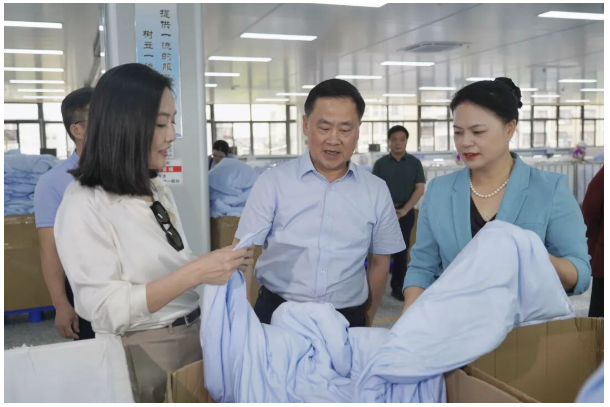 秦春成强调,丝绸产业是河池的亮丽名片,“丝绸+农文旅”融合是前景广阔的富民之路。各级各部门要坚决贯彻市委、市政府的战略部署,坚定不移做大做优做强河池茧丝绸产业,坚定不移打造有色金属、桑蚕茧丝绸“两个千亿”产业集群,坚定不移推动产城融合、创新融合发展。市县两级和园区要研究政策、用好政策,全力支持龙头企业发展,并提供要素保障,把解决企业急难愁盼问题项目化、清单化,结合“十五五”规划加快推进落实。要以牢固树立和践行正确政绩观为引领,坚定不移走生态优先、绿色发展之路,让群众得福祉、企业有发展。希望龙头企业坚持创新驱动,加大新产品研发,不断提升品牌影响力,并在巩固自身基本盘的同时,辐射带动更多企业协同发展,邀请更多企业到河池投资,为河池高质量发展多做贡献。