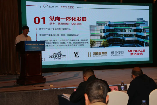 在交流发言环节,来自全省蚕桑主产区、科研院所、龙头企业的代表分享了各自的实践经验。杨远萍介绍了全省蚕桑产业发展情况。屈勇介绍凉山州蚕桑产业建圈强链相关情况。毛业炀介绍南充市蚕桑产业建圈强链推进情况。青学刚聚焦科学防控家蚕农药中毒,守护蚕桑产业安全这一主题,从现状、问题、对策三个方面展开汇报。杨端学深入分析当前蚕种生产形势,并就蚕桑产业高质量升级发展展开思考与探讨。龙宗筱结合南丝路集团产业实际,分享了四川蚕桑如何从“大”走向“强”。张泽洪以武胜的实践为例,汇报安泰探索的“龙头引领、科技赋能、联农带农、全域辐射”蚕桑产业高质量发展路径。邹沛分享了尚好茶业 “立桑为业、多元发展” 推动桑产业全链高值化融合发展的实践路径。崔建伟全面分析行业生产、出口及内销情况,指出产业稳中有进、结构优化,香云纱等高端产品逆势增长。范鸿才作交流发言,围绕蚕桑企业茧款支付与农产品收购发票风控展开,分析金税四期与增值税法下行业虚开、现金交易、三流不一致等合规风险,给出全链条解决方案。