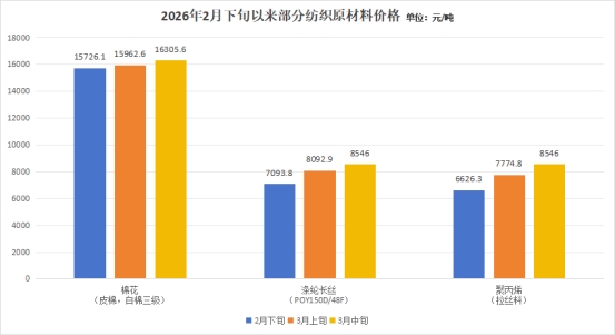(二)2026年2月下旬以来部分纺织原材料价格走势
