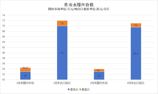 图3:柞蚕水缫丝价格(2月末-3月末)数据来源:中国茧丝绸交易市场统计