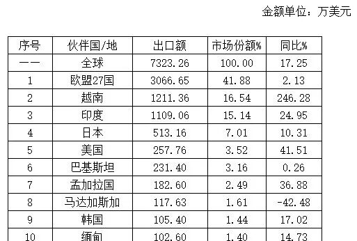 出口增长核心受三大因素支撑:欧盟作为第一大出口市场,需求保持稳定;印度、越南等市场发挥重要“压舱石” 作用;美国关税政策调整带来短期窗口期效应,成为出口增长的重要支撑。