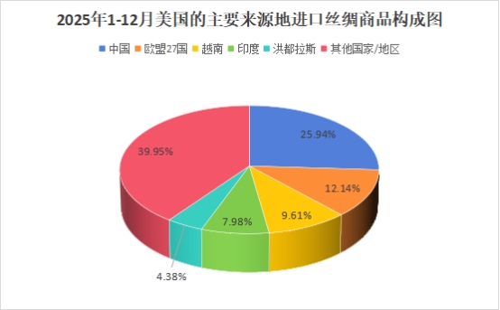 (图15:2025年1-12月美国的主要来源地进口丝绸商品构成数据来源:美国商务部)