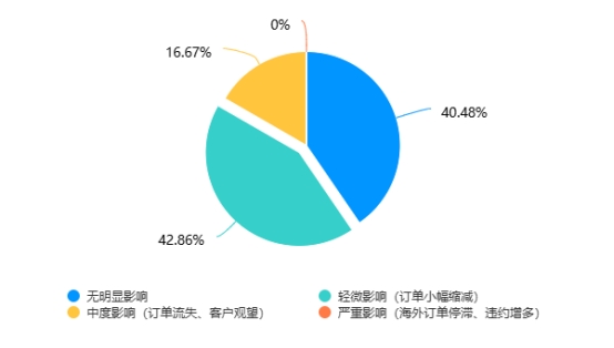 在3月时间段,目前订单规模整体平稳,内销主导市场:超七成企业订单规模基本持平或小幅增长,内销为主企业占比过半,外销占比波动显著。地缘冲突对近六成企业受影响。