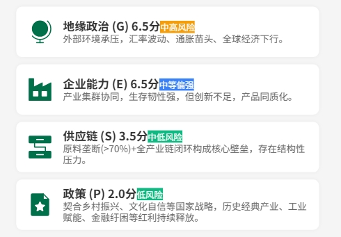 核心特征:行业面临显著的外部压力。国际汇率波动、欧美走高的通货膨胀率,以及全球经济下行的宏观趋势,共同构成了中高风险环境。这些因素直接影响着行业的出口贸易和成本控制。